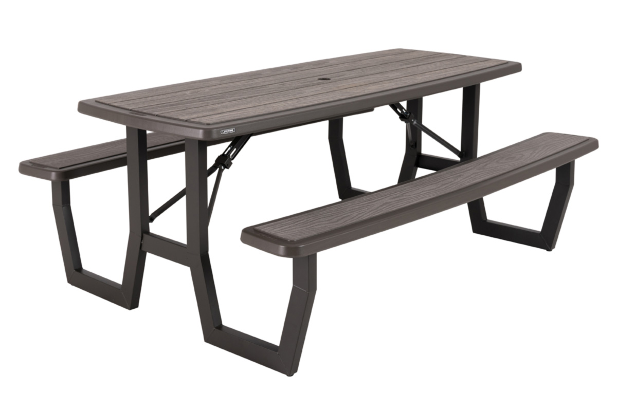 Комфортная мебель для обеда на свежем воздухе — стол с лавочками LIFETIME. Комбинированный комплект обеденной мебели украсит любой загородный участок или уличное кафе.