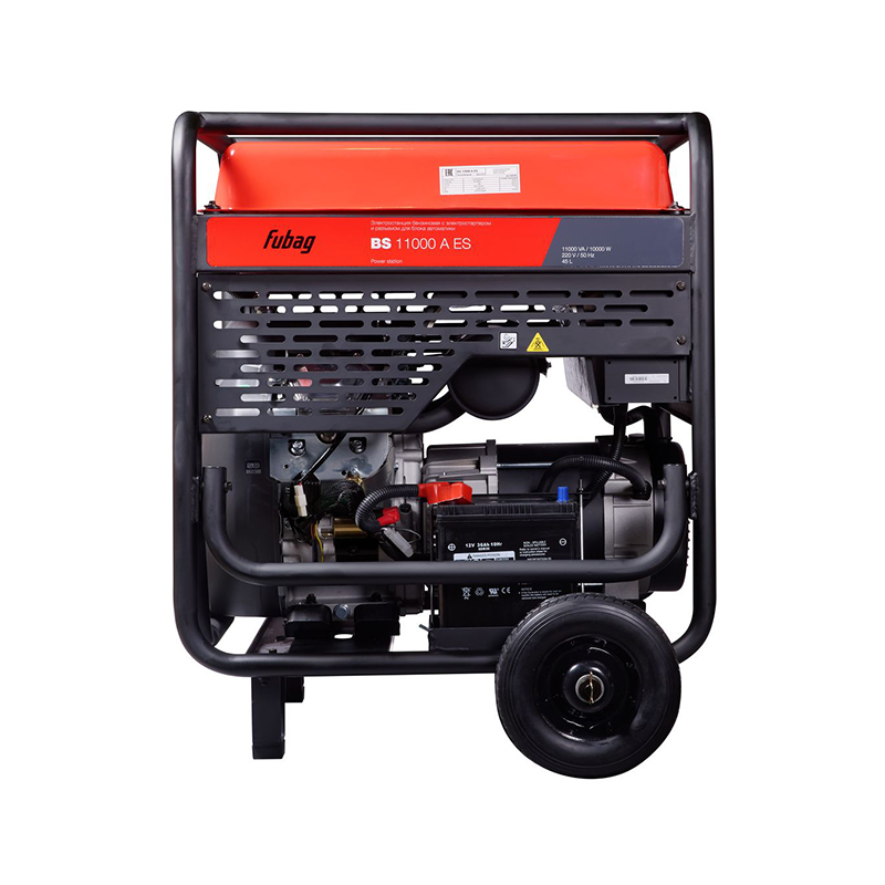 BS 11000 A ES – однофазная бензиновая электростанция Fubag номинальной мощностью 10,0 кВт. Обеспечит электроснабжение загородного дома, коммунальные или социальные объекты. Высокий ресурс работы генератора обеспечат профессиональный V-образный 2-х цилиндровый OHV-двигатель FUBAG. Синхронный альтернатор с медными обмотками ротора и статора оснащен системой регулировки выходного напряжения (AVR), который гарантирует стабильное выходное напряжение и частоту тока.