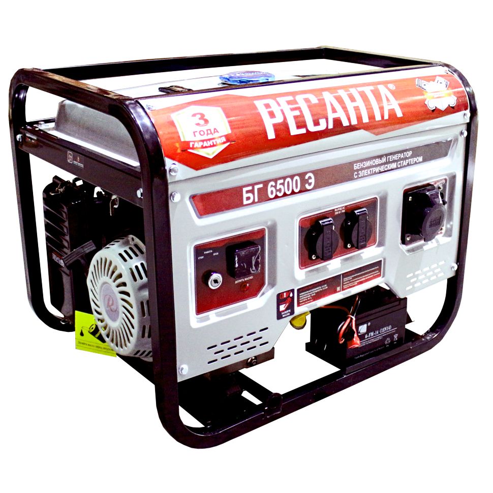 Электрогенератор бензиновый (бензогенератор) — электрическая машина, предназначенная для автономного электроснабжения в повторнократковременном режиме потребителей бытового и аналогичного назначения, относящихся к классу переносных электроприемников. В качестве первичного двигателя используется карбюраторный двигатель, топливом для которого является неэтилированный бензин. Электрогенератор РЕСАНТА имеет бытовое назначение.В условиях временного или постоянного отсутствия электроэнергии обеспечить питание электрооборудования можно с помощью генератора РЕСАНТА модели БГ 6500 Э. Несмотря на компактные габариты и относительно небольшой вес, бензогенератор демонстрирует высокий КПД и хорошие показатели мощности. Генератор РЕСАНТА БГ 6500 Э имеет увеличенный ресурс двигателя, медную обмотку альтернатора. Оснащен многофункциональным цифровым дисплеем с индикацией величины напряжения, частоты тока и счетчиком моточасов; Модель БГ 6500 Э имеет 2 розетки 16 А. Агрегат оснащен надежным одноцилиндровым двигателем, который работает на неэтилированном бензине. Сфера применения установки включает в себя, как коммерческие объекты (магазины, ларьки, офисы), так и загородные дома, дачи, подсобные хозяйства. При покупке бензинового генератора Ресанта БГ 6500 Э, Вы останетесь довольны его прекрасной производительностью и компактным внешним видом.Особенности:- Генераторы имеют увеличенный ресурс двигателя;