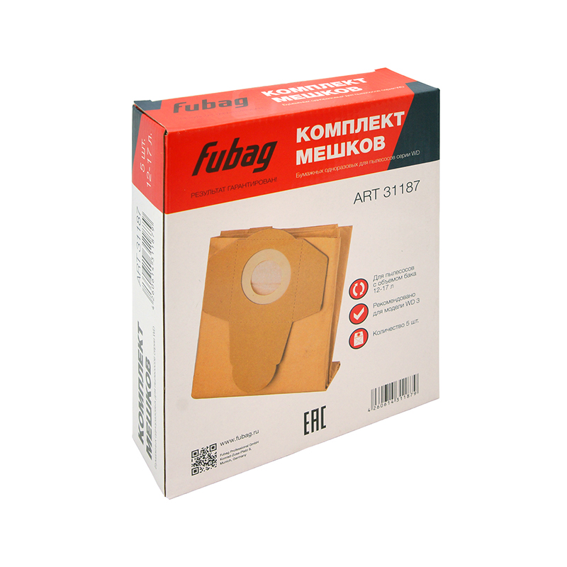 FUBAG Комплект мешков одноразовых 12-17 л для пылесосов серии WD 3_5 шт.