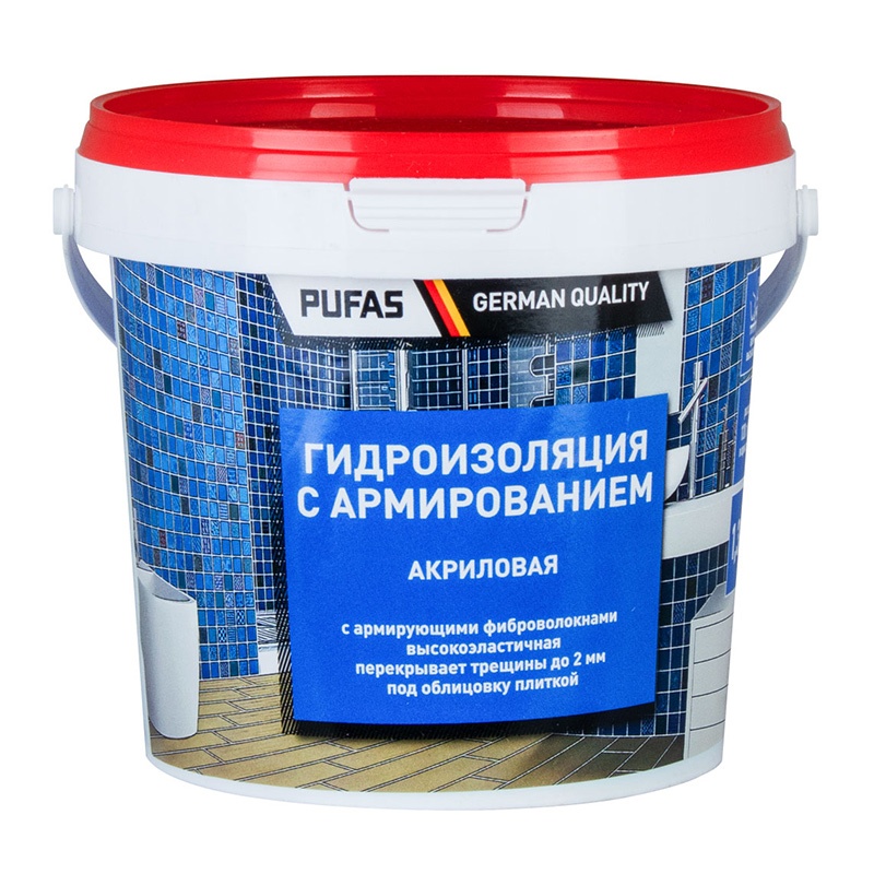 Гидроизоляция Pufas акриловая, с армированием, морозостойкая, 1,3 кг