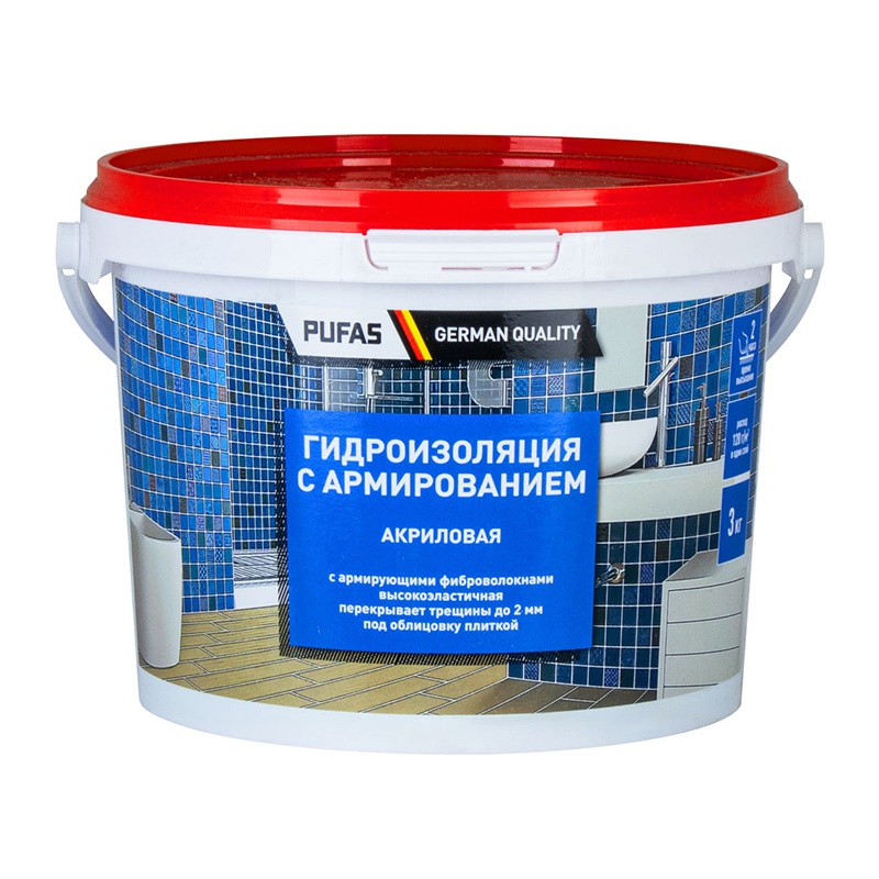 Гидроизоляция Pufas акриловая, с армированием, морозостойкая, 3 кг