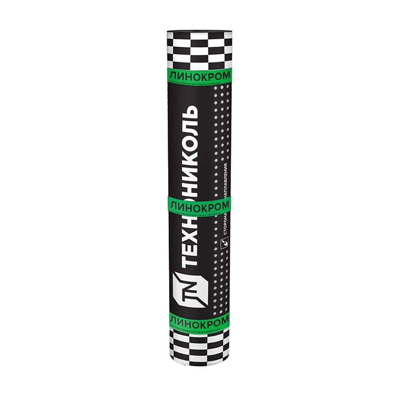 Линокром ХПП — наплавляемый кровельный гидроизоляционный материал на окисленном битуме, состоящий из прочной негниющей основы, на которою с двух сторон наносится битумное вяжущее. Предназначен для устройства кровли в два слоя (в качестве нижнего слоя). Материал необходимо использовать только совместно с ТКП (верхний слой). Также Линокром ХПП можно использовать для гидроизоляции фундамента. Основа материала — стеклохолст. Верхняя сторона материала состоит из толстой полиэтиленовой пленки, которая защищает слой из стеклохолста от механических повреждений. Нижняя сторона материала покрыта защитной полиэтиленовой пленкой, которую необходимо нагреть на этапе монтажа. Она имеет индикаторный рисунок (логотип ТЕХНОНИКОЛЬ), с помощью которого можно контролировать величину боковых нахлестов.