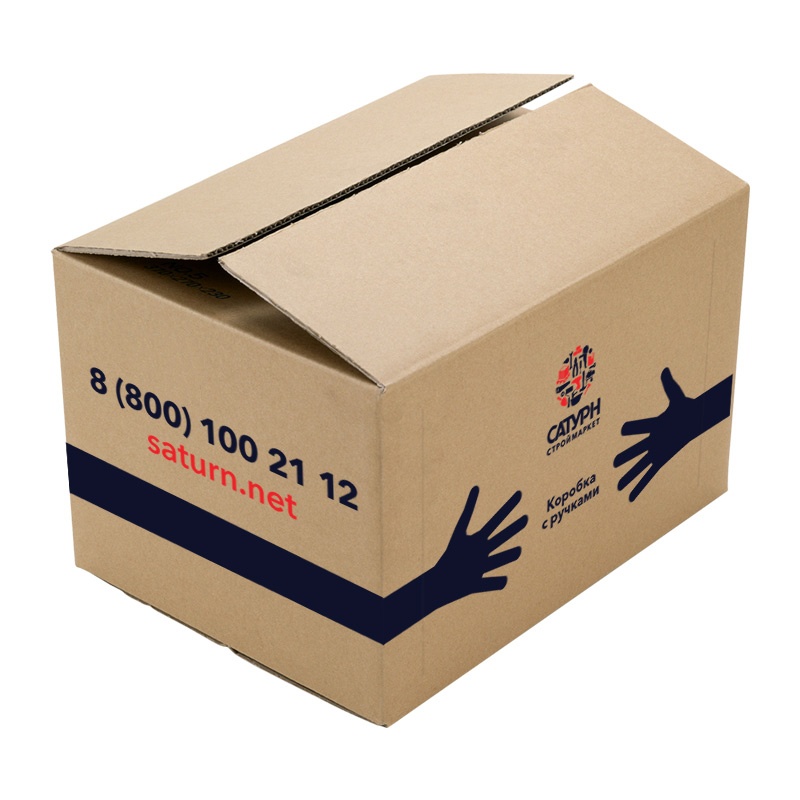 Предназначена для переноски и транспортировки различных материалов, а также их постоянного или временного хранения. Изготовлена из трехслойного гофрокартона коричневого цвета с логотипом «СатурнСтройМаркет». На торцах коробки имеются специальные прорези для удобства переноски коробки.