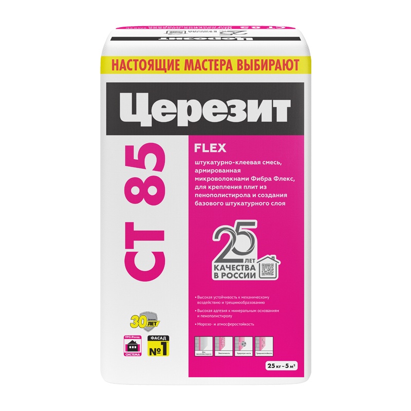 Смесь штукатурно-клеевая Церезит CT 85 для плит из пенополистир., 25 кг