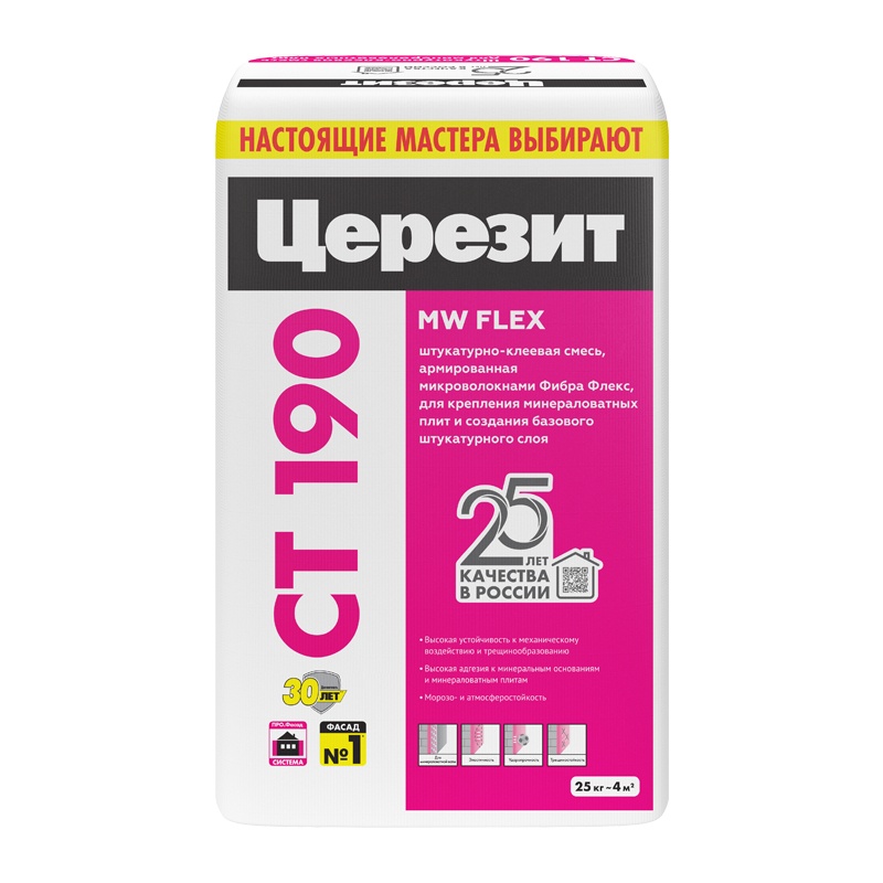 Предназначена для крепления минераловатных теплоизоляционных плит на минеральных основаниях и создания на них базового штукатурного слоя, армированного стеклосеткой, при устройстве систем наружной теплоизоляции фасадов Ceresit WM.