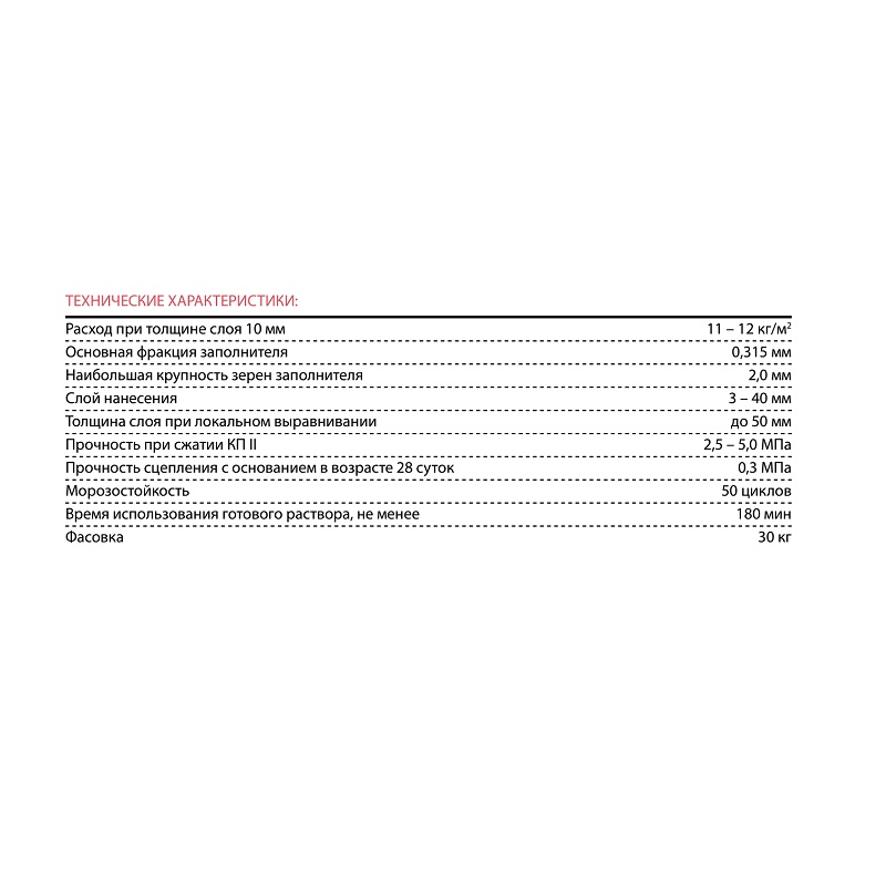 Предназначена для высококачественного выравнивания (слой 3 – 40 мм) поверхности фасадов зданий и сооружений, стен внутри всех видов помещений в т.ч. влажных и неотапливаемых: подвалы, балконы и лоджии, паркинги, лестничные пролеты, марши, склады, душевые и ванные комнаты. Может применяться для предварительного выравнивания потолков, для заделки трещин, выбоин и углублений. Используется под последующую отделку: финишное шпатлевание, отделку декоративными штукатурками, плиточную облицовку или окрашивание, а также применяется в качестве накрывочного (лицевого) слоя при устройстве комбинированных многослойных штукатурных систем. Штукатурный слой обладает высокой паропроницаемостью и адгезией к основанию, а также стойкостью к усадке. Содержит лёгкий наполнитель перлит. Для наружных и внутренних работ. Для нанесения с помощью всех видов штукатурных станций и для ручного нанесения.
