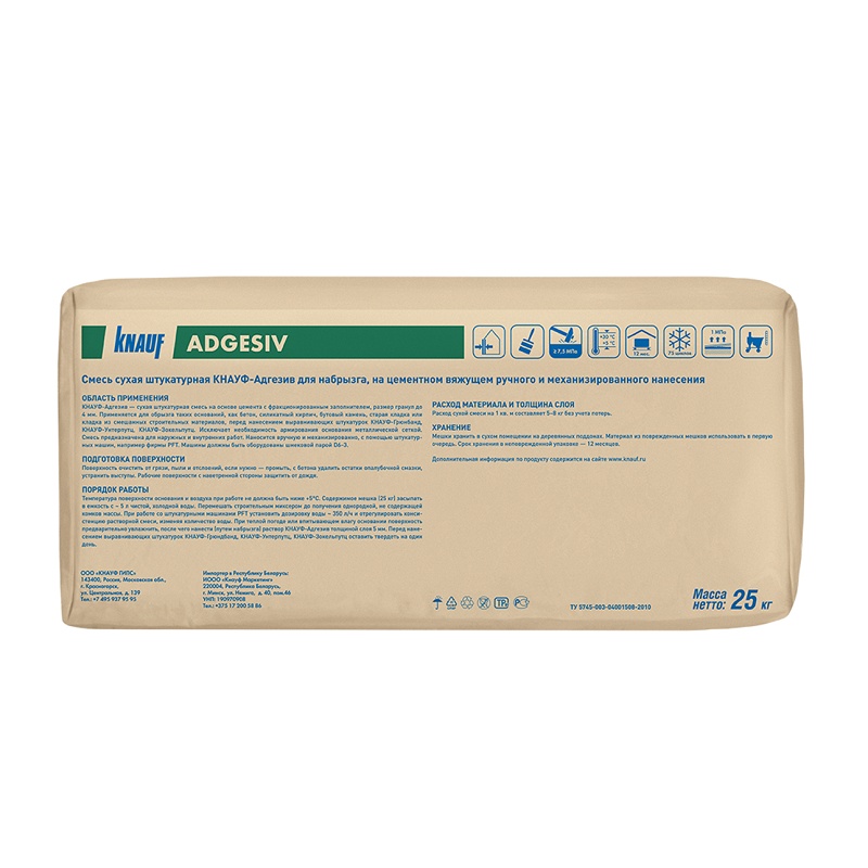 Предназначена для предварительной обработки и обрызга оснований из бетона, бутового камня, силикатного кирпича, старой кирпичной кладки, смешанной кладки перед нанесением выравнивающих цементных штукатурок. Исключает необходимость предварительного крепления металлической сетки к бетонному основанию.