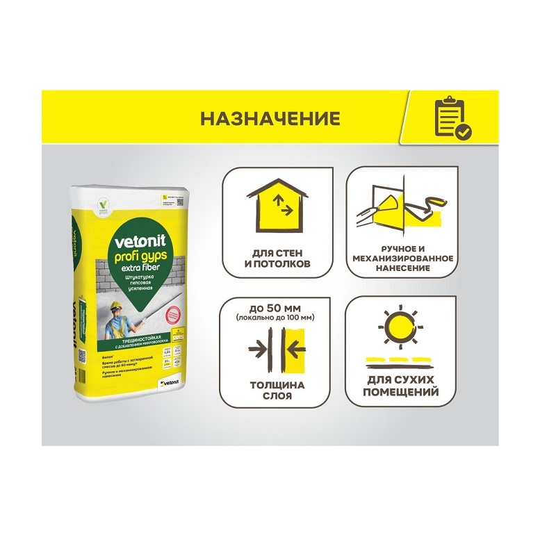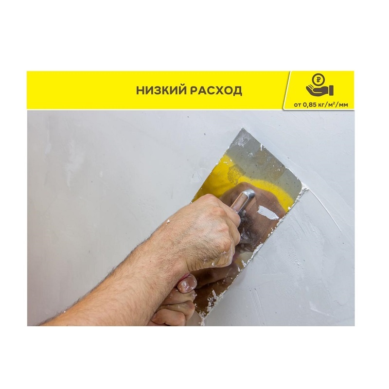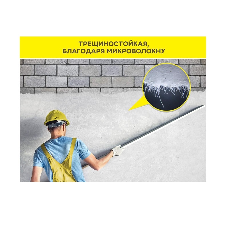 Предназначена для базового выравнивания стен и потолков в сухих помещениях с нормальной влажностью, а также на кухне, в коридоре, сан.узле (кроме ванных комнат). Используется для нанесения по бетонным, пенобетонным, кирпичным основаниям, а также по штукатуренной поверхности. Трещиностойкая, благодаря армировке микроволокном. Легко набрасывается и разравнивается. Для ручного и машинного нанесения.