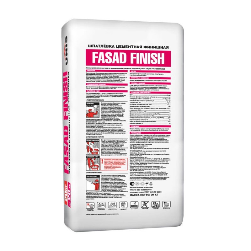 Шпаклевка цементная Unis Фасад финиш белая — высокопрочная, белоснежная, цементная, финишная шпатлевка, для выравнивания поверхностей перед окрашиванием, нанесением декоративных покрытий, оклейкой обоями. Возможно использование для заделки выбоин, трещин, раковин глубиной до 6 мм. Применяется для наружных работ, а также внутри сухих, влажных, отапливаемых и неотапливаемых помещений. Может наноситься как ручным, так и механизированным способом.