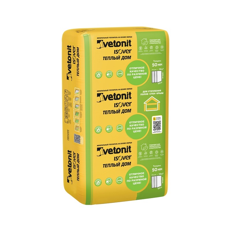 Тепло- и звукоизоляция Ветонит Теплый Дом из минеральной ваты на основе кварца применяется для всестороннего утепления и звукоизоляции дома одним продуктом.