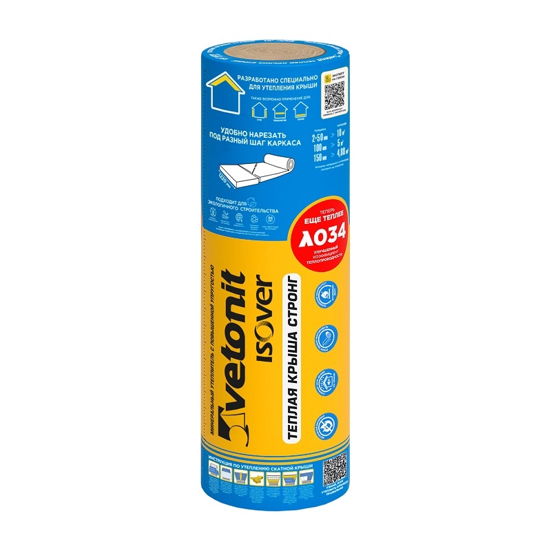 Теплая и упругая минеральная вата Ветонит Теплая Крыша Стронг для утепления и звукоизоляции крыши и мансарды даже с самым нестандартным шагом стропил без крепежа. Утеплитель отличается усиленной влагостойкостью и специальной разметкой на поверхности минваты для нарезки на плиты любого размера. Благодаря повышенной упругости утеплитель не выпадет из стропил даже с шагом до 800мм! Для стандартного шага каркаса – 600 мм, достаточно разрезать пачку поперек на 2 равные части и установить в стропила.