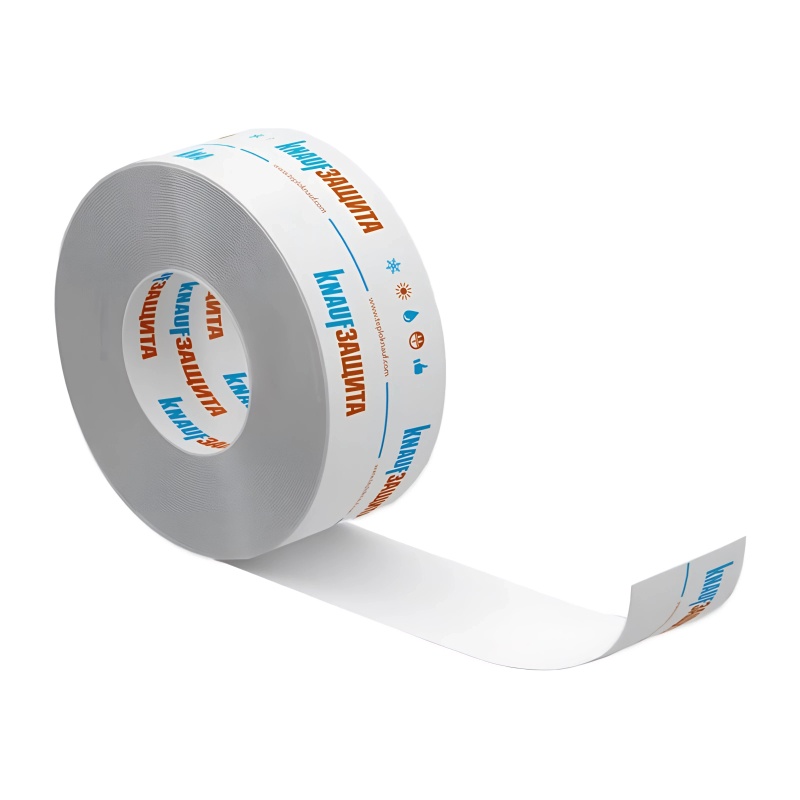 Клейкая лента КНАУФ Защита устойчива к погодным условиям, воздействию воды и УФ-лучей, что позволяет использовать ее в различных климатических условиях, включая температуру эксплуатации от -30 до +70°С.