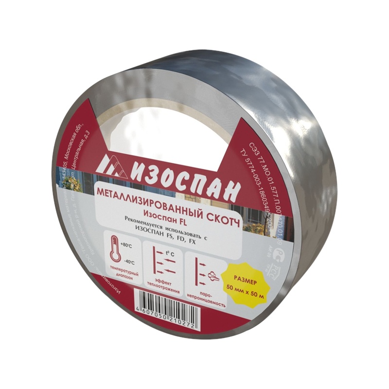 Предназначена для герметизации и соединения между собой полотнищ материалов Изоспан RF, FS, FD, FX, а также для устранения мелких повреждений между данными полотнами. При этом Изоспан FL создаёт цельную теплоотражающую поверхность. Температура монтажа-не ниже +15 °С.