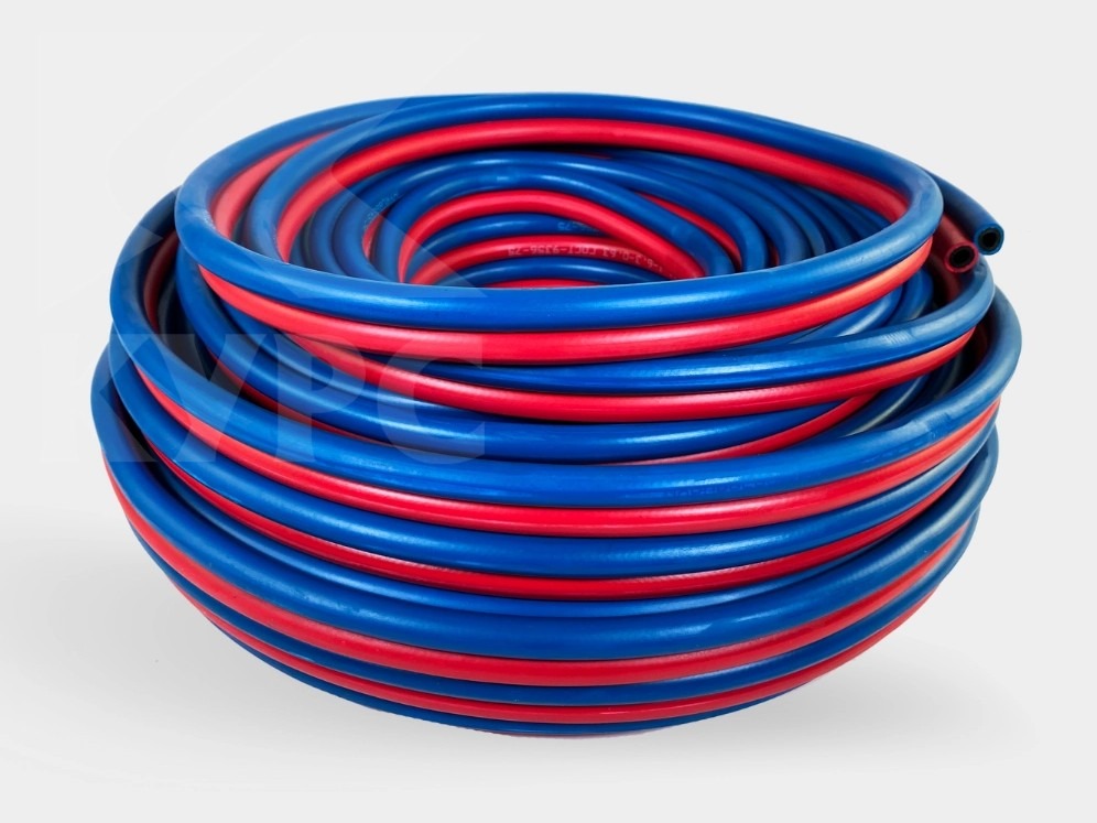 В нашем каталоге представлен сдвоенный напорный рукав TWIN-Line 6,3х17 в бухтах 5, 10, 20 и 40 метров. Состоит из двух рукавов – синего кислородного (III класс) и красного ацетиленового (I класс). Рукав twin монтируется на пескоструйный рукав, он выполняет задачу управления клапаном дистанционного управления посредством клавиши включения/выключения. Сочетание разных цветов сдвоенного рукава предотвращает ошибку в его подключении в системе КПДУ. Благодаря системе КПДУ, в состав которой входит сдвоенный рукав, оператору-пескоструйщику не нужно каждый раз подходить к аппарату, чтобы включить/выключить его, он может регулировать подачу абразива просто нажимая клавишу управления, располагающуюся под соплом.
