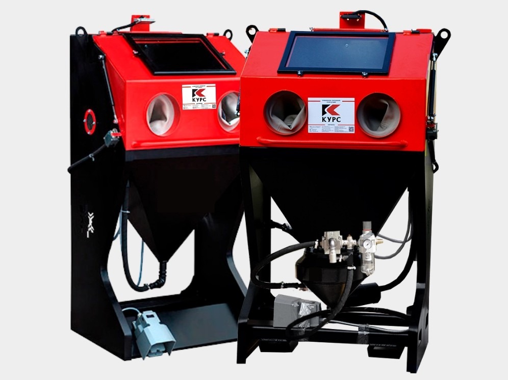 В процессе обработки абразивная смесь падает через решетчатый настил в бункер камеры. Когда работа закончена, оператор отжимает педаль, подача абразива прекращается, кабину можно открыть и выгрузить обработанные изделия.