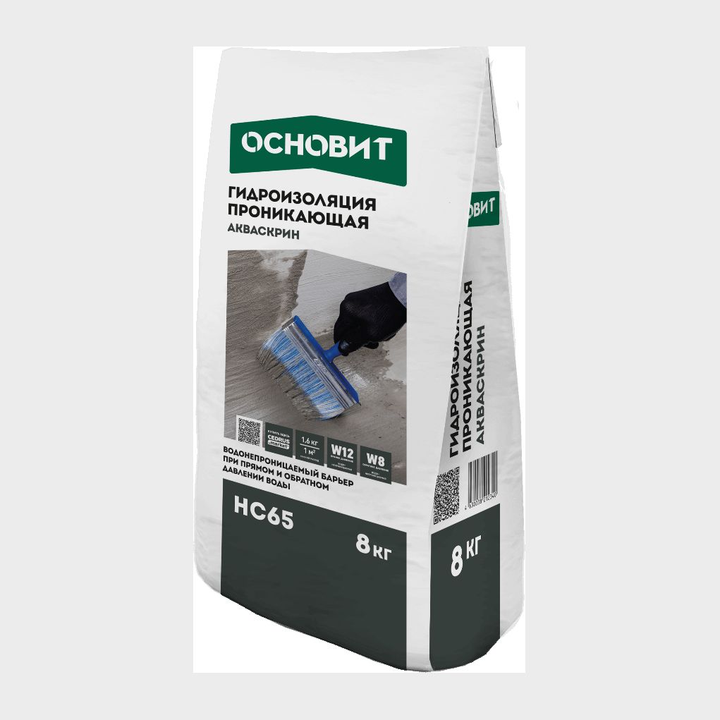 Водоостонавливающая гидроизоляция проникающего типа ОСНОВИТ АКВАСКРИН НС65 предназначена для гидроизоляции бетонных конструкций изнутри: