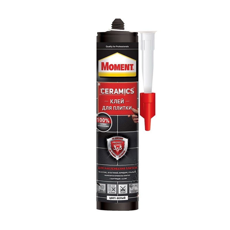 100% готовый к применению монтажный клей для выполнения работ с плиткой. Наносится прямо на стену (не нужно использовать шпатель). Обеспечивает чистую работу. Без пыли и грязи (по сравнению с традиционными сухими клеями для плитки). Высокая сила приклеивания – подходит даже для тяжёлых плиток. Расход: 1 упаковка (картридж) ~ 2,5 м2.