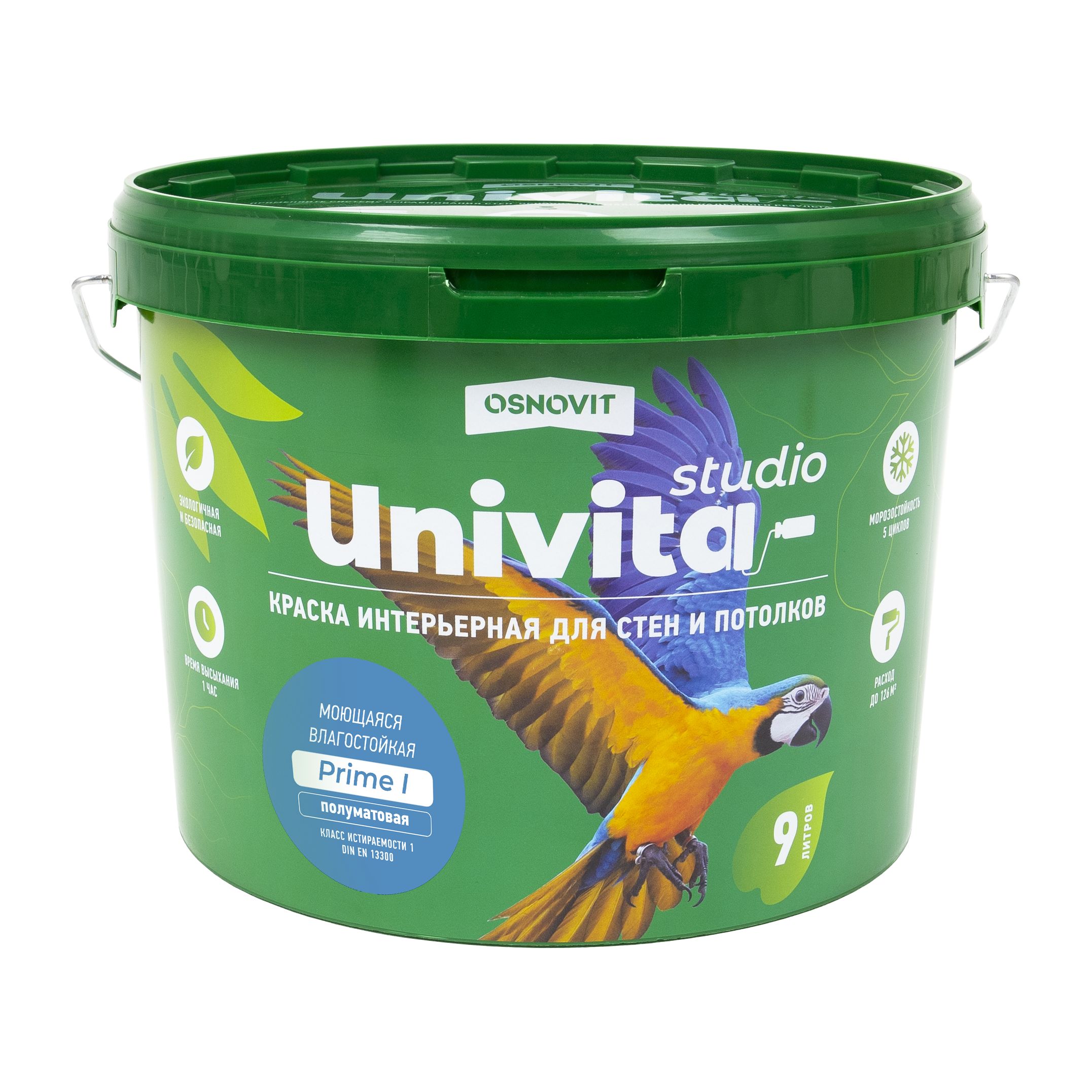 Интерьерная краска полуматовая моющаяся для стен и потолков ОСНОВИТ UNIVITA STUDIO Prime I