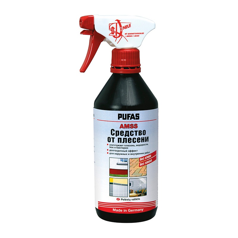 Предназначен для удаления зелёного налёта, плесени с таких поверхностей, как: каменная кладка, черепица, шиферные кровли, бетонные плиты, а также с надгробных камней, дерева, стекла, плитки и т. д. Для внутреннего и наружного применения. Применимо также как санирующее для предварительной обработки основания для последующих малярных работ. Без хлора и запаха.