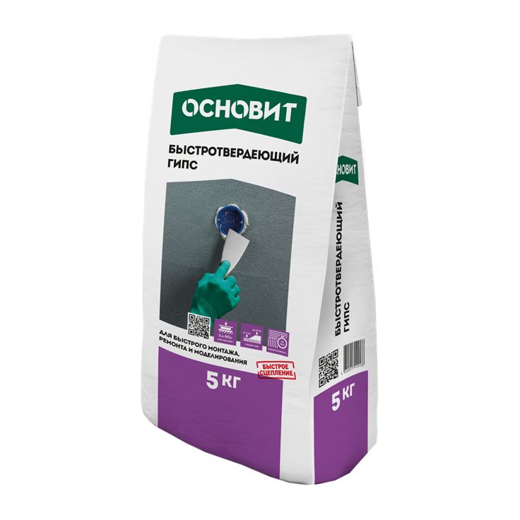 Быстротвердеющий строительный гипс ОСНОВИТ предназначен для быстрой фиксации электрических розеток, крепления электропроводки, штукатурных маячков.
