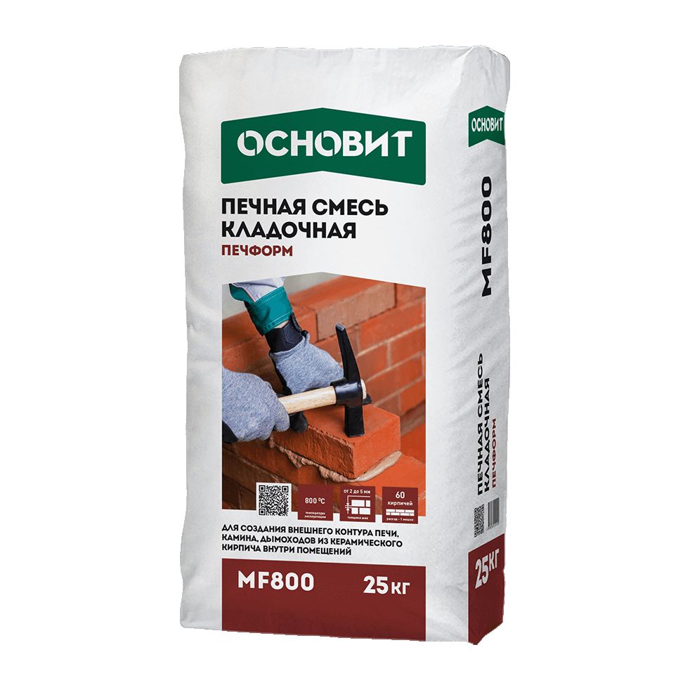 Печная смесь кладочная ПЕЧФОРМ МF800 предназначена для создания внешнего контура печи, камина, дымоходов из керамического кирпича внутри помещений. Обладает высокой пластичностью, надежно фиксирует элементы кладки. Максимальная температура применения 800⁰С.