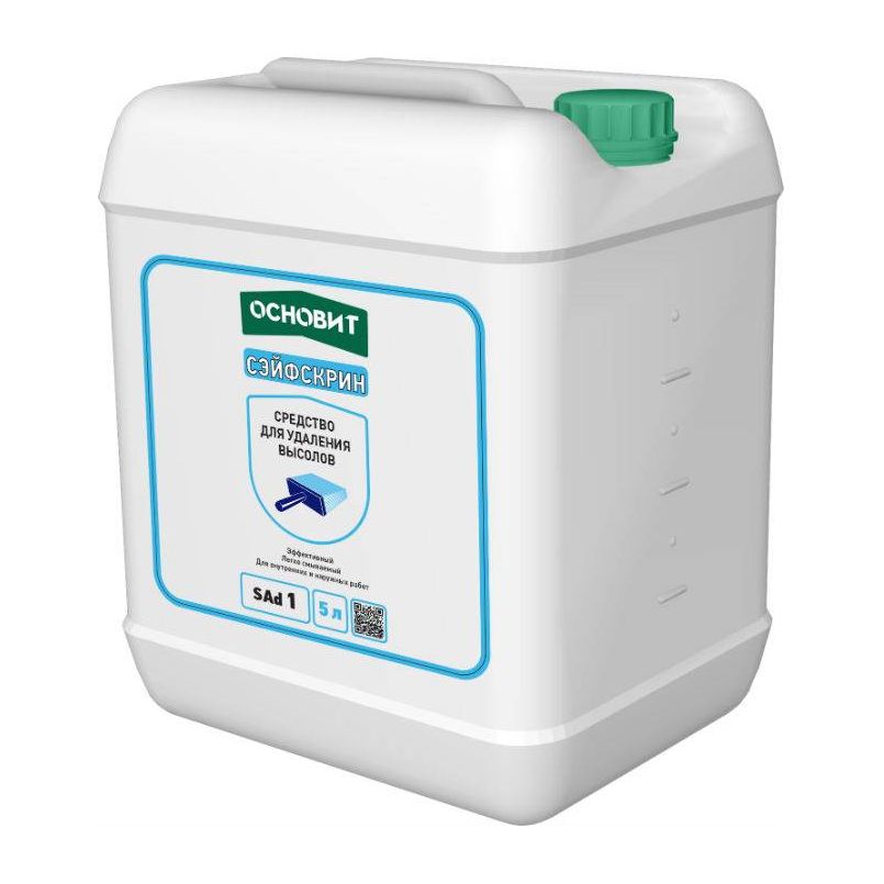 Средство для удаления высолов ОСНОВИТ СЭЙФСКИН SАD1 предназначено для очистки солевых отложений (высолов), цементного и известкового налёта, остатков цементного раствора и атмосферных загрязнений.
