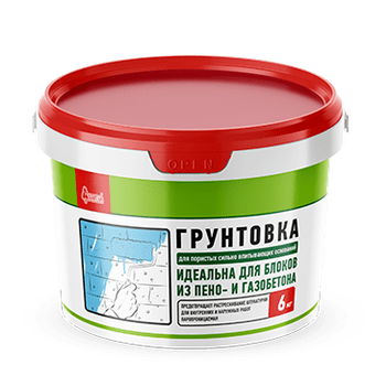 Для предварительной обработки оснований из ячеистого бетона (пенобетонных, газобетонных, газосиликатных) перед последующим нанесением гипсовых штукатурок; гипсовых, цементных и полимерных шпатлевок; плиточных клеев. Не применяется перед выравниванием цементными штукатурками. Грунтование производится строго в один слой.