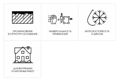 Предназначена для обработки стандартных, непрочных, сильно впитывающих оснований. Укрепляет поверхность, выравнивает и стабилизирует впитывающую способность оснований и увеличивает прочность сцепления (адгезию) последующих покрытий, таких как: штукатурки, шпаклевки, плиточные клеи и лакокрасочные материалы на водной основе. Особенно рекомендуется для укрепления слабых, мелящих оснований. Для внутренних и наружных работ. Для ручного и машинного нанесения.