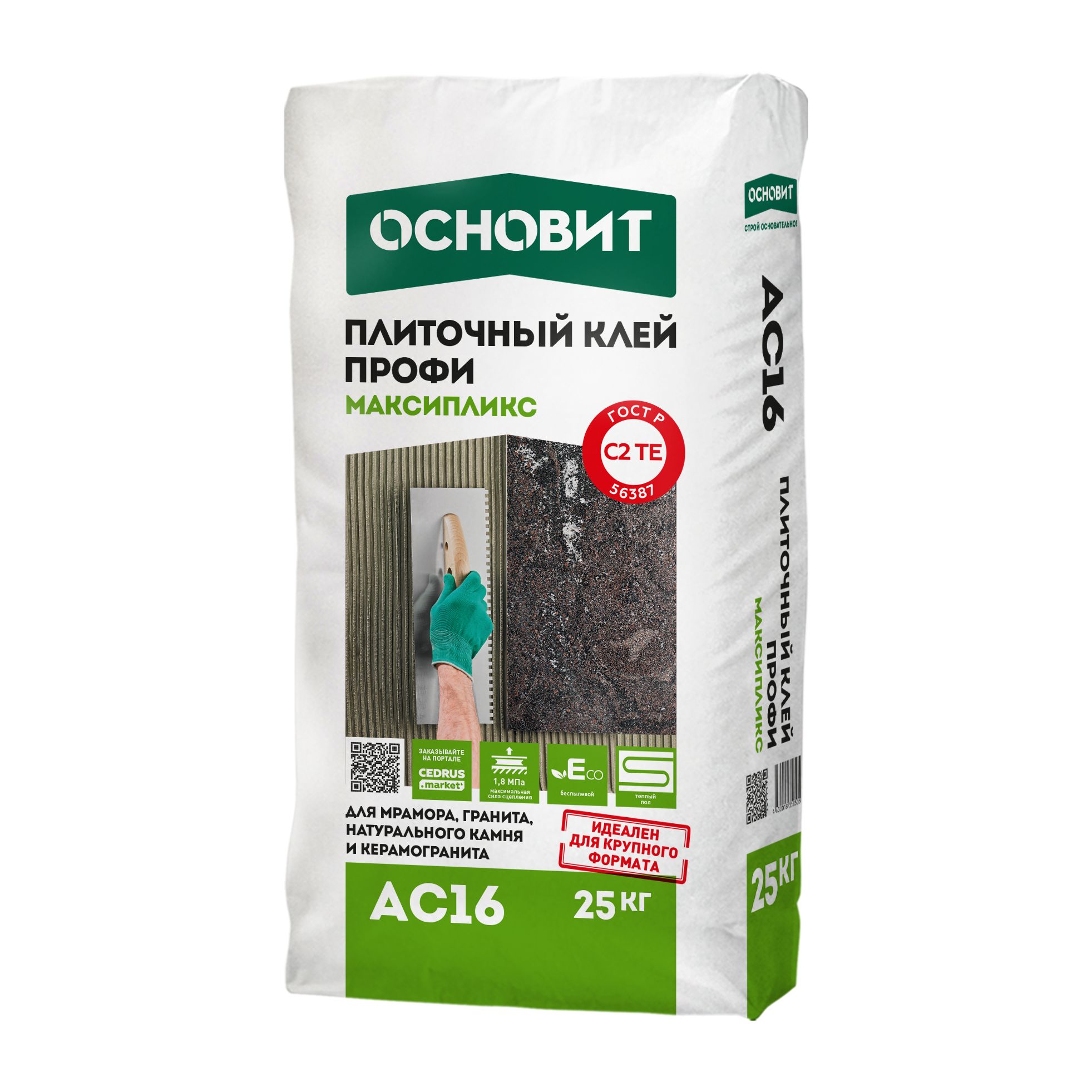 Плиточный клей ОСНОВИТ МАКСИПЛИКС АС16 беспылевой предназначен для облицовки стен и пола крупноформатными плитами из мрамора и гранита, натуральным и искусственным камнем(клинкерная плитка), керамогранитом и керамической плиткой.