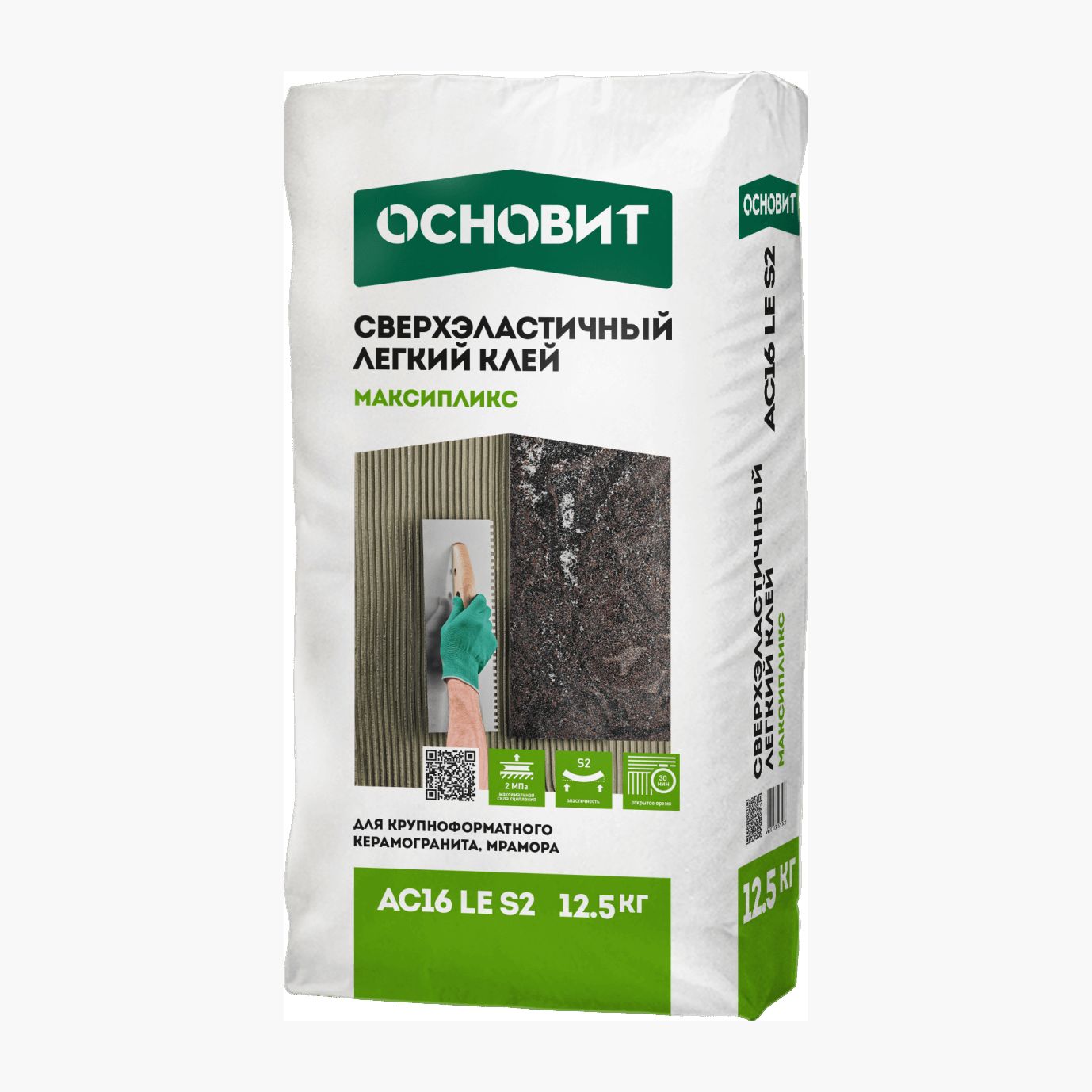Клей ОСНОВИТ МАКСИПЛИКС АС16 LЕ s2 легкий сверхэластичный предназначен для облицовки стен и пола керамической плиткой и керамогранитом, плитами из мрамора и гранита, натуральным и искусственным камнем