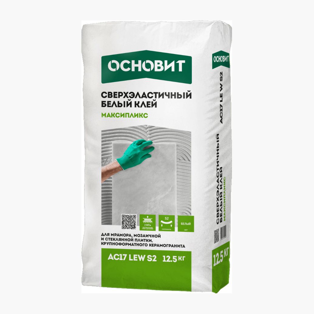 Клей ОСНОВИТ МАКСИПЛИКС АС17 LЕW s2 легкий сверхэластичный предназначен для облицовки стен и пола плитами из мрамора, цветной и прозрачной стеклянной плиткой, декоративной мозаикой, стекло-блоками, гранитом, натуральным и искусственным камнем.
