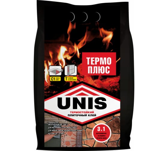 Термостойкий плиточный клей для различных нагреваемых поверхностей: системы «Тёплого пола», внешних поверхностей печей и каминов. Клей обеспечивает надежное клеевое соединение при постоянном воздействии температуры +150 °С и выдерживает кратковременный нагрев до +250 ºС. Клей «ТЕРМО ПЛЮС» предназначен для укладки всех видов керамической плитки, клинкерной плитки, плит из природного камня и керамогранита малого и среднего формата на полы, стены в любых помещениях: влажных, сухих, промерзающих и отапливаемых. Подходит для облицовки фасадов зданий. Клей может использоваться для затирания швов.