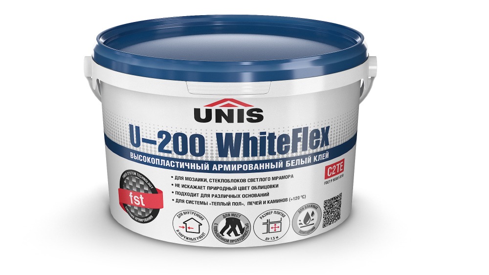 U-200 WHITEFLEX Высокопластичный белый армированный клей для плитки любого типа и формата 5 кг