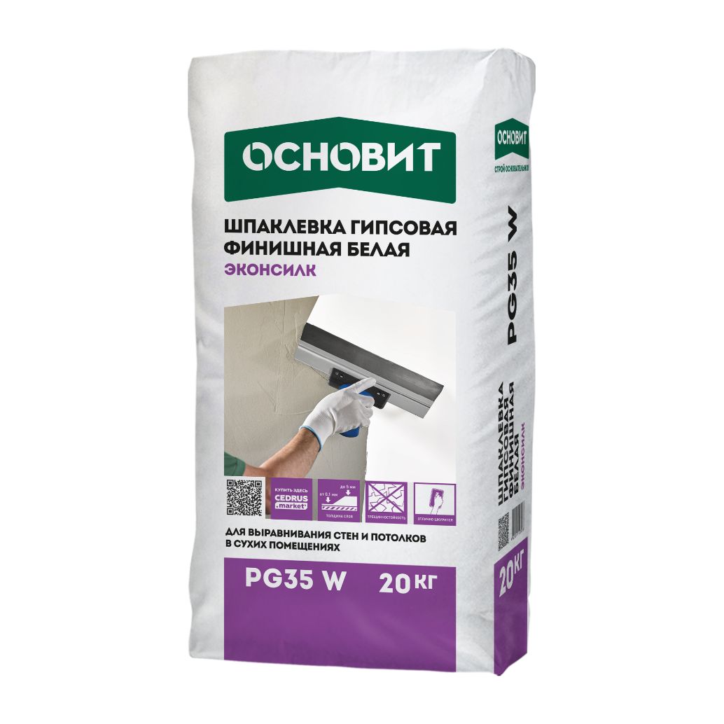 ЭКОНСИЛК PG35 W шпаклевка гипсовая финишная белая ОСНОВИТ. Толщина слоя 0,1-5 мм