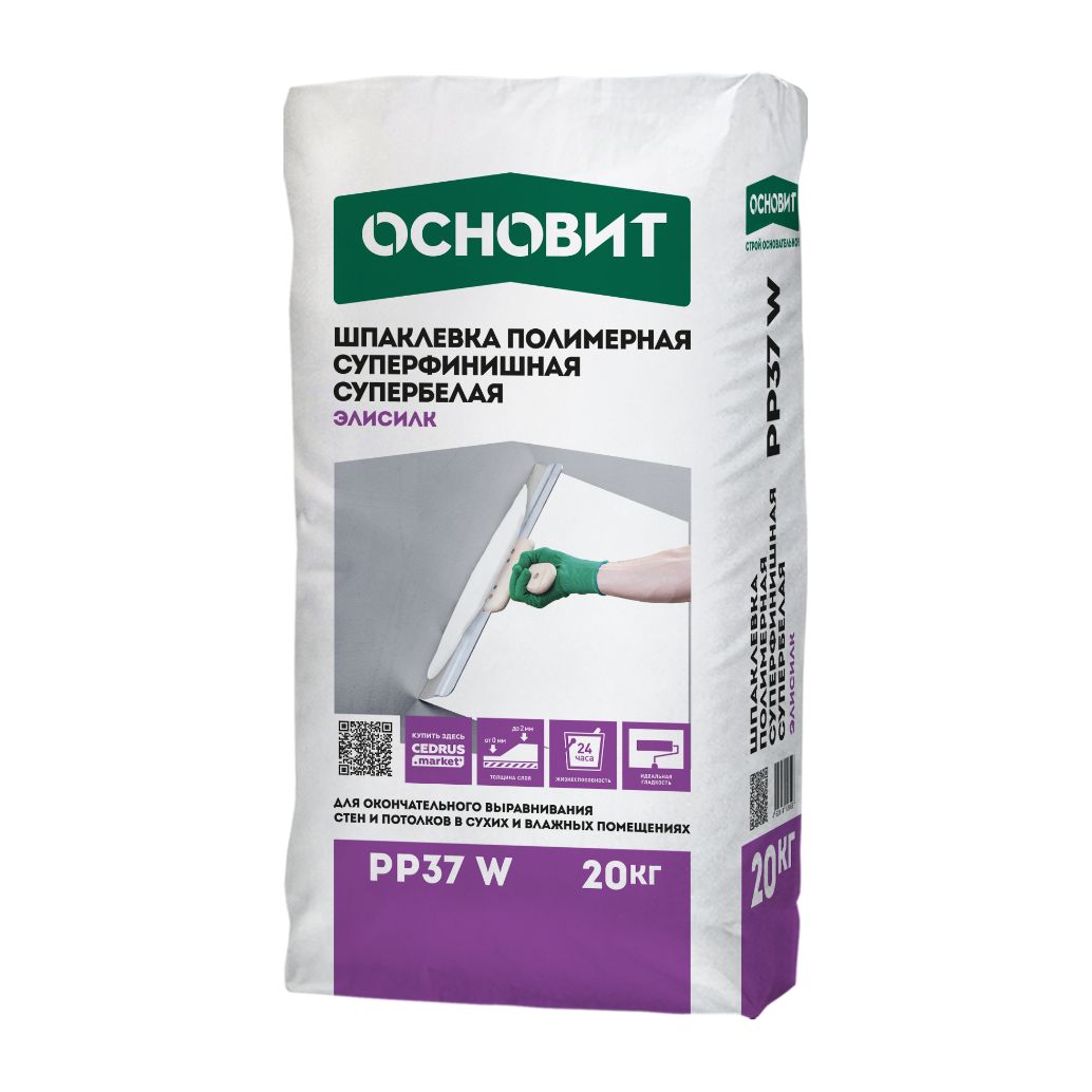 Шпаклевка ОСНОВИТ ЭЛИСИЛК PP37 W предназначена для окончательного выравнивания стен и потолков в сухих и влажных помещениях.