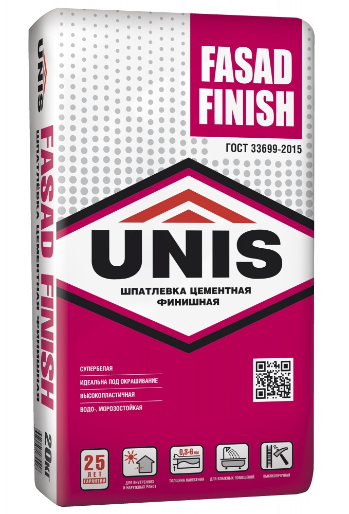 Высокопрочная белоснежная цементная финишная шпатлевка для выравнивания поверхностей перед окрашиванием, нанесением декоративных покрытий, оклейкой обоями. Возможно использование для заделки выбоин, трещин, раковин глубиной до 6 мм. Применяется для наружных работ, а также внутри сухих, влажных, отапливаемых и неотапливаемых помещений. Может наноситься как ручным так и механизированным способом.
