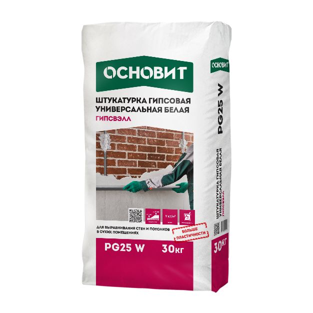 Гипсовая штукатурка серая ОСНОВИТ ГИПСВЭЛЛ PG25 предназначена для выравнивания стен и потолков в помещениях с нормальной влажностью.