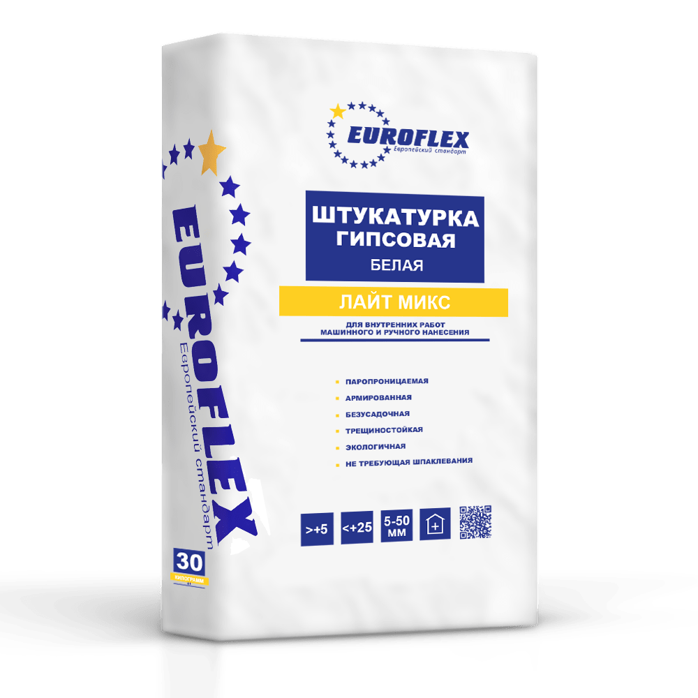 Гипсовая штукатурка EUROFLEX® предназначена для выравнивания поверхности стен и потолков под последующую финишную декоративную отделку (шпатлевание и окрашивание, оклейка обоями, облицовка плиткой и т.д.) при проведении работ внутри помещений с нормальным уровнем влажности. Используется для механизированного и ручного нанесения. Предназначена для нанесения механизированным и ручным способом.