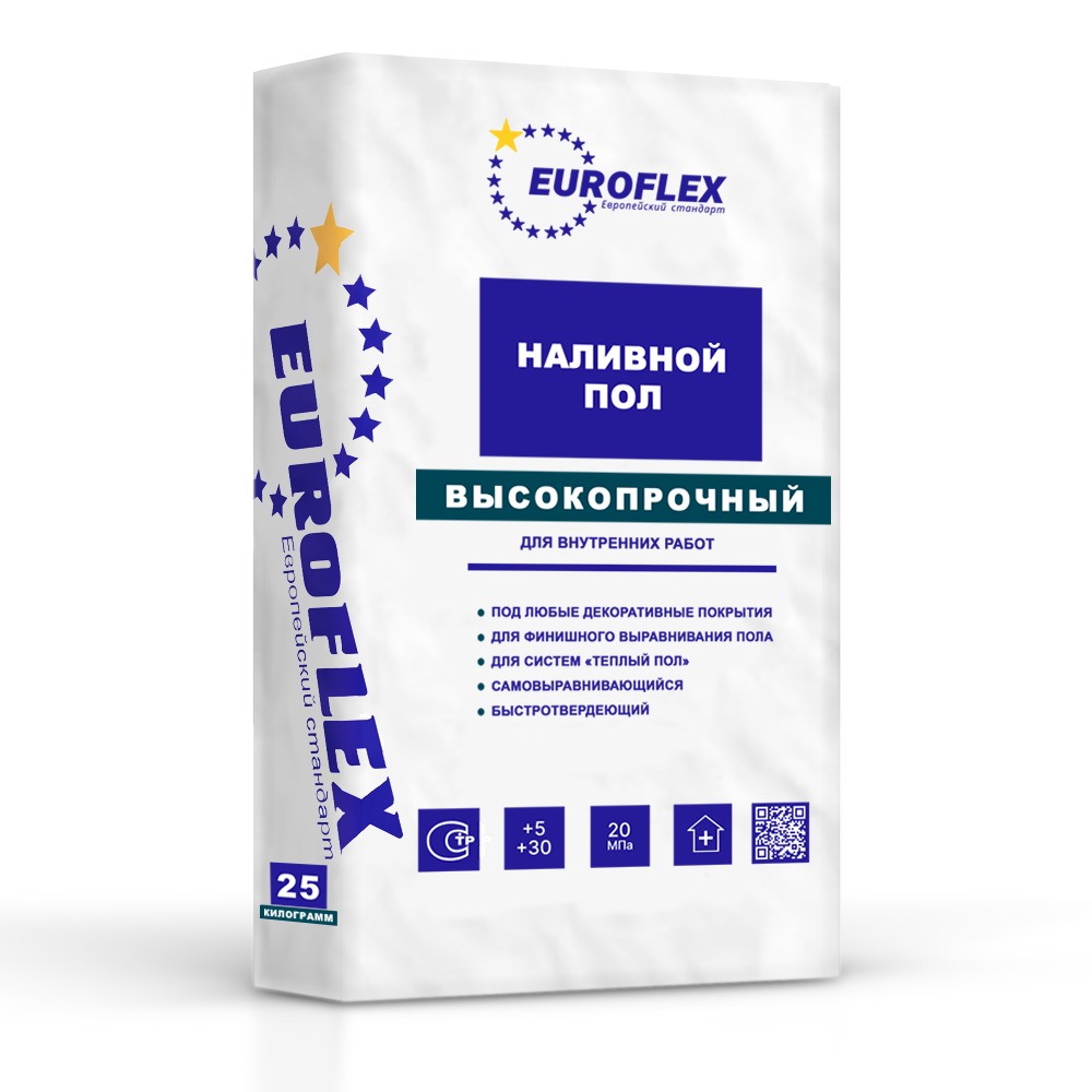 Наливной пол Euroflex высокопрочный для сухих и влажных помещений. Создает прочную поверхность под дальнейшую укладку напольных покрытий. Благодаря своим характеристиками подходит для применения всех видов клеевых составов и любое напольное покрытие. Разрешается использовать в жилых и офисных помещениях. Для сухих и влажных помещений. Ручное и механизированное нанесение.