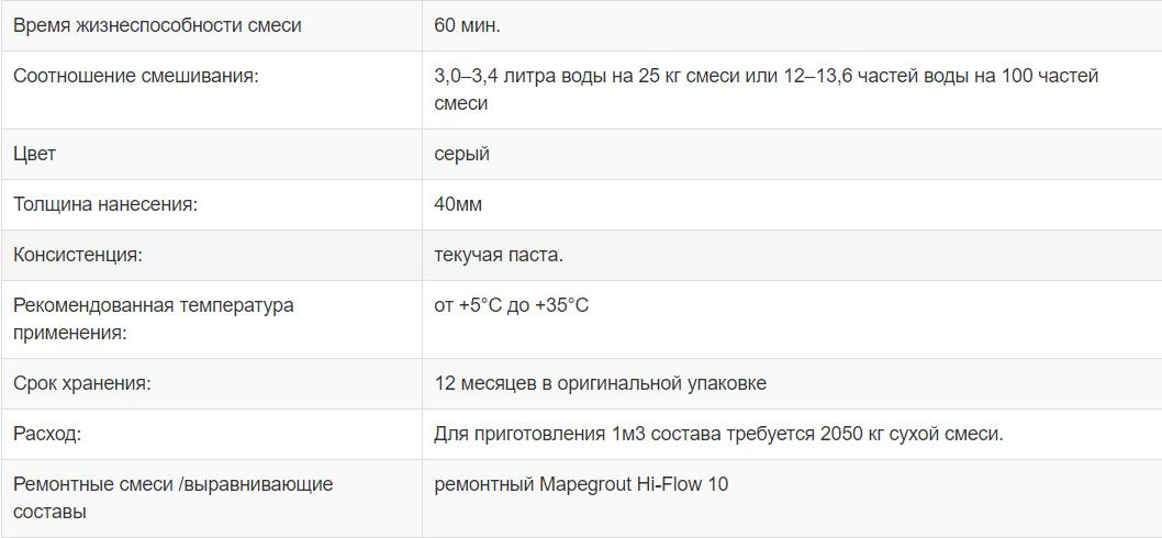• Не используйте Mapegrout Hi-Flow10 для нанесения набрызгом или шпателем (используйте Mapegrout MF, Mapegrout Thixotropic).