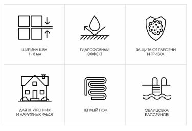 Предназначена для заполнения межплиточных швов в облицовке из керамической плитки, клинкера и керамогранита, натурального камня, стеклянной и керамической мозаики на стенах и полах. Ширина шва от 1 до 8 мм. Высокая водоотталкивающая способность позволяет использовать затирку в отапливаемых и неотапливаемых помещениях с любым уровнем влажности (кухни, туалеты, душевые и ванные комнаты), а также для заполнения швов облицовок в плавательных бассейнах.
