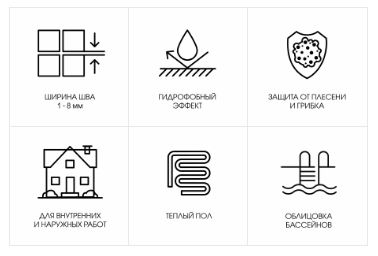 Предназначена для заполнения межплиточных швов в облицовке из керамической плитки, клинкера и керамогранита, натурального камня, стеклянной и керамической мозаики на стенах и полах. Ширина шва от 1 до 8 мм. Высокая водоотталкивающая способность позволяет использовать затирку в отапливаемых и неотапливаемых помещениях с любым уровнем влажности (кухни, туалеты, душевые и ванные комнаты), а также для заполнения швов облицовок в плавательных бассейнах.