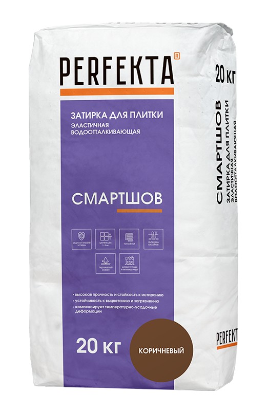 Затирка для плитки эластичная водоотталкивающая Смартшов коричневый, 20 кг