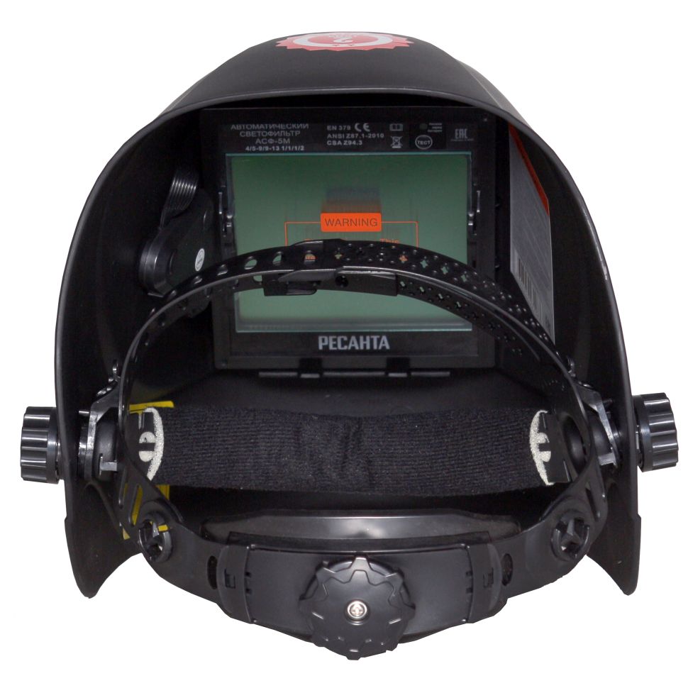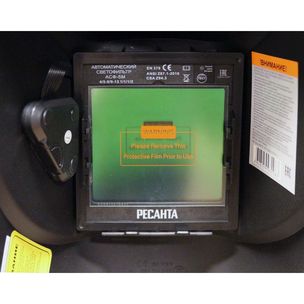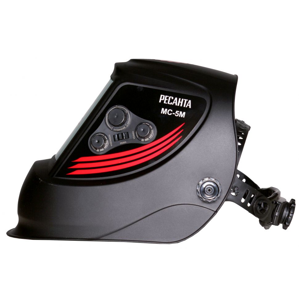 Сварочная маска РЕСАНТА МС-5М предназначена для защиты глаз от видимого, ультрафиолетового и инфракрасного излучения, а также для защиты головы и шеи от попадания искр при сварочных работах. Маска данного типа удобна, поскольку светофильтр автоматически затемняется при зажигании дуги. Такой светофильтр назвали «хамелеоном» из-за способности автоматически затемняться. Степень затемнения можно настраивать с помощью встроенного регулятора в зависимости от модели маски.Светофильтр