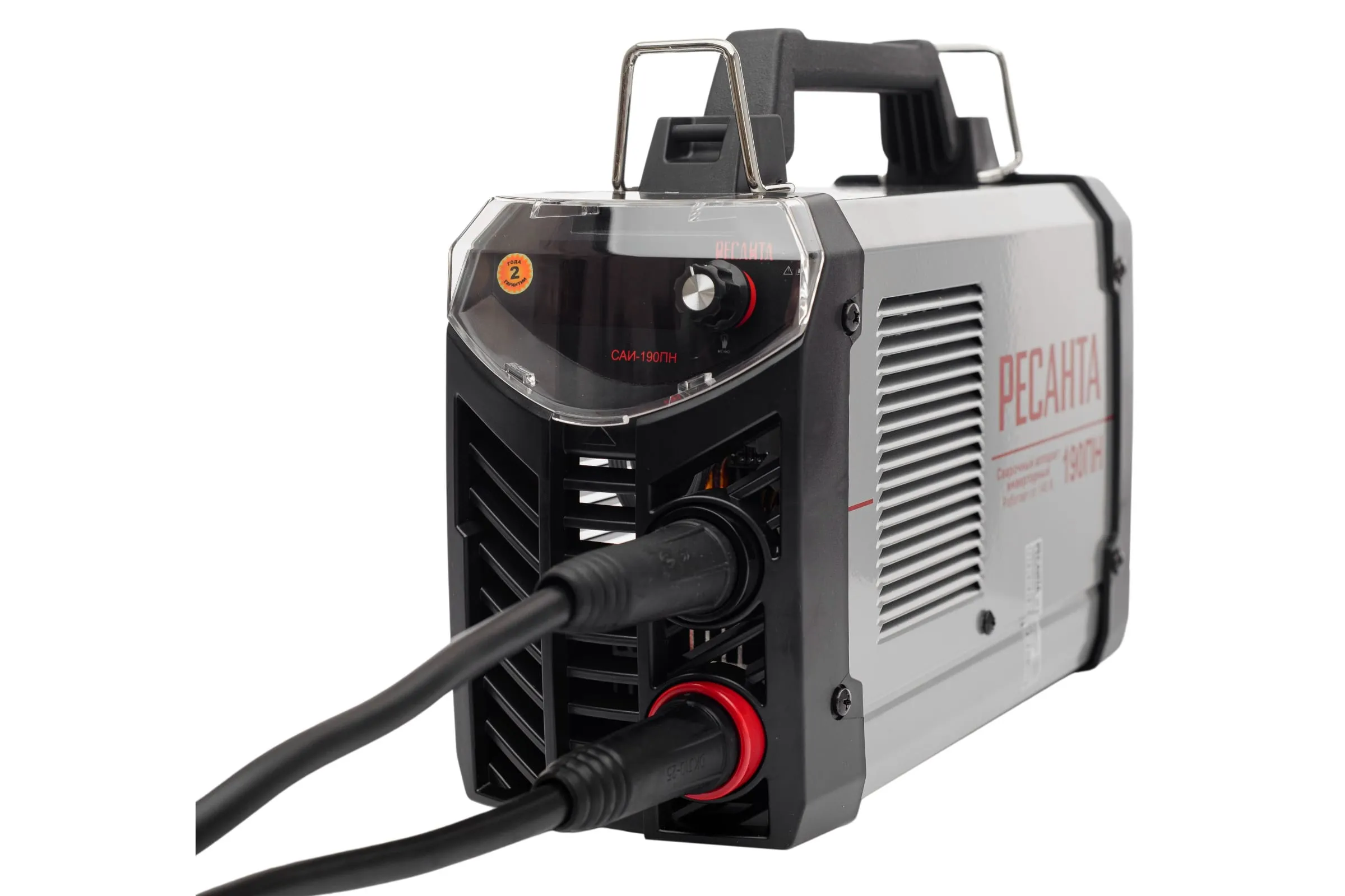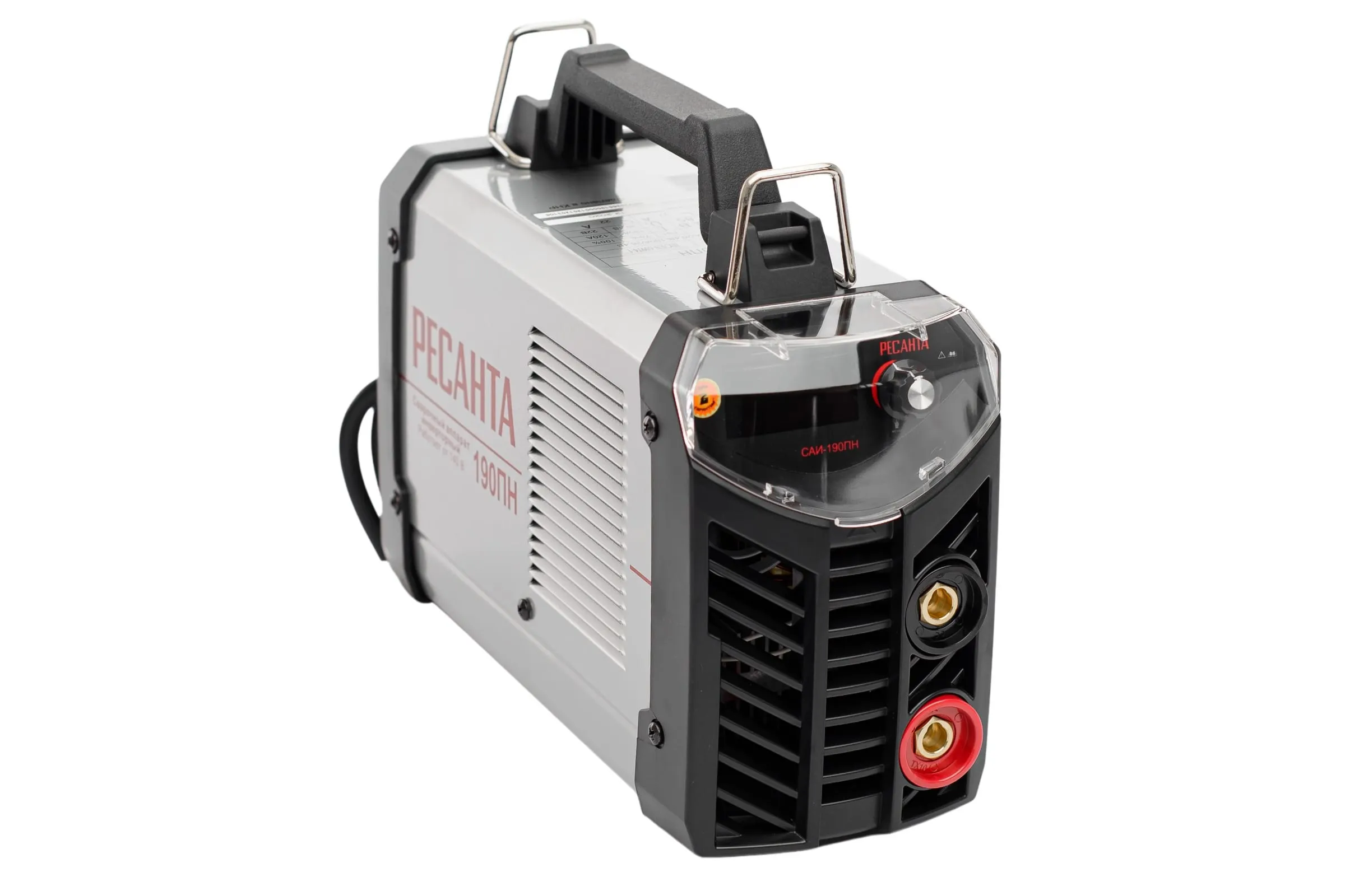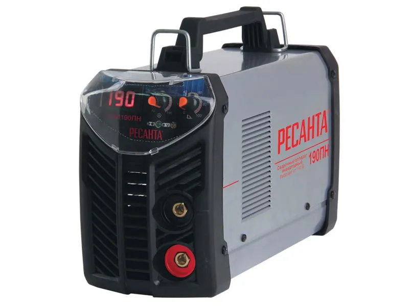 Инвертор сварочный РЕСАНТА САИ 190ПН Артикул: 051-0561 — модель с максимальным сварочным током 190 А, заземлением от шнура по протоколу IP21 и весом всего 6,4 кг. Позволяет использовать в работе электроды диаметром от 1,6 до 5 мм. Данная модификация подходит для работы при пониженном напряжении, что особенно актуально при использовании в сельской местности, дома или на даче. Устройство дополнено защитой от перегрева, регулируемым форсажем дуги, а также функциями ANTI STICK» и «HOT START».
