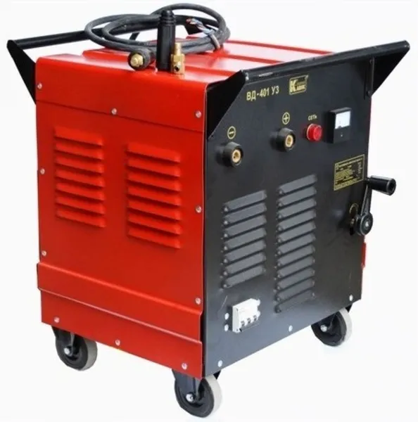 Модель ВД-401 предназначена для дуговой ручной сварки металлов. Состоит из трансформатора, выпрямляющего блока, частотных/силовых регуляторов, накопителей заряда, сглаживающих импульсные скачки.