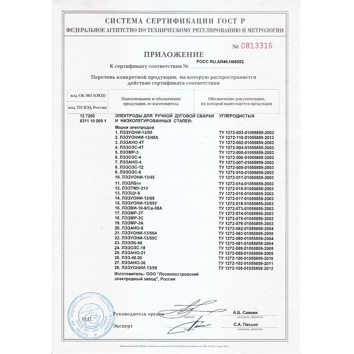 Электроды марки ЛЭЗ УОНИ-13/55 предназначены для ручной дуговой сварки особо ответственных конструкций из углеродистых и низколегированных сталей, когда к металлу сварных швов предъявляют повышенные требования по пластичности и ударной вязкости, особенно при работе в условиях пониженных температур. Сварка во всех пространственных положениях, кроме вертикального сверху вниз, постоянным током обратной полярности.