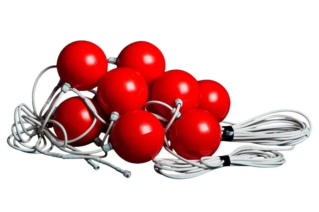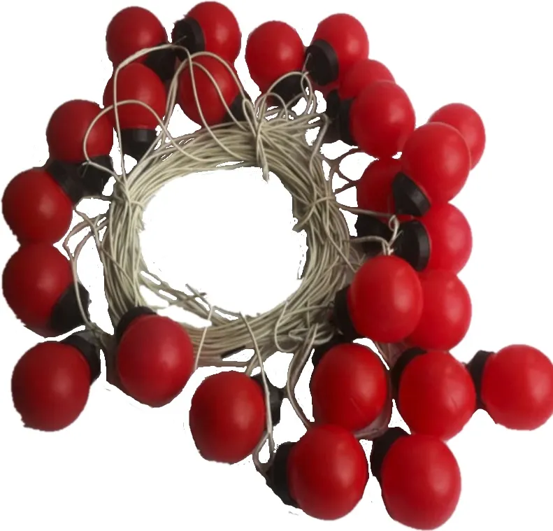 Сигнальная гирлянда состоит из 75 параллельно соединенных лампочек, потребляющих минимум электроэнергии. Расстояние между фонарями (шаг) — 2 метра. Длина хвоста (длина провода между крайней лампочкой и местом подключения к источнику питания) — 10 метров.
