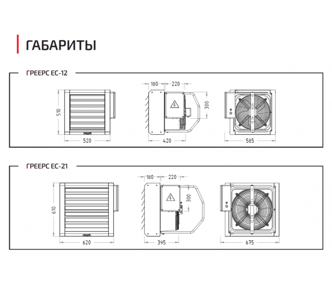 Электрический тепловентилятор ГРЕЕРС ЕС-12 — элемент децентрализованной системы отопления. Аппараты с системой двухступенчатого нагрева ТЭНов позволяют максимально быстро и эффективно обогревать помещения любого объема и назначения, такие как: